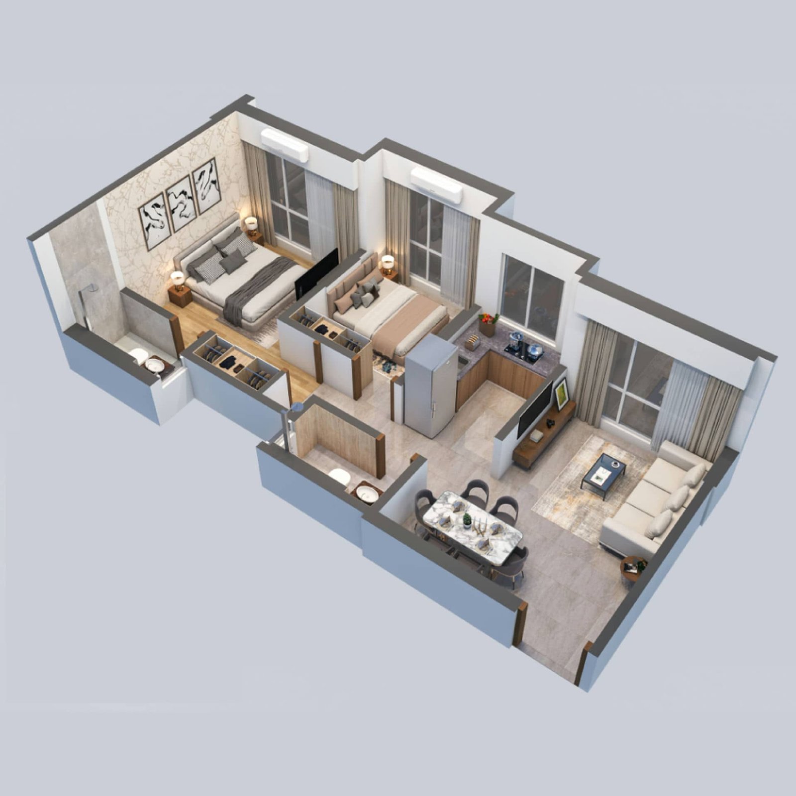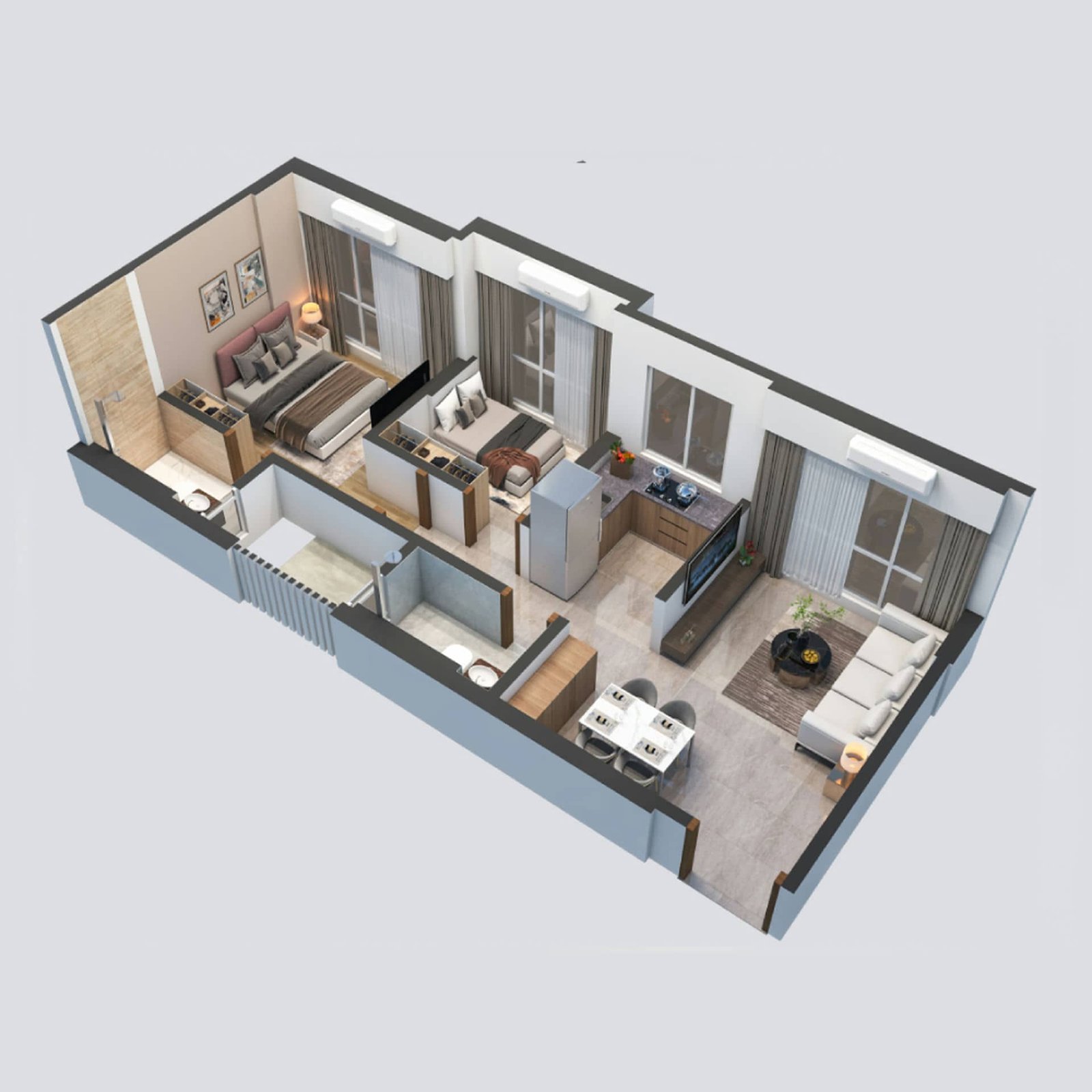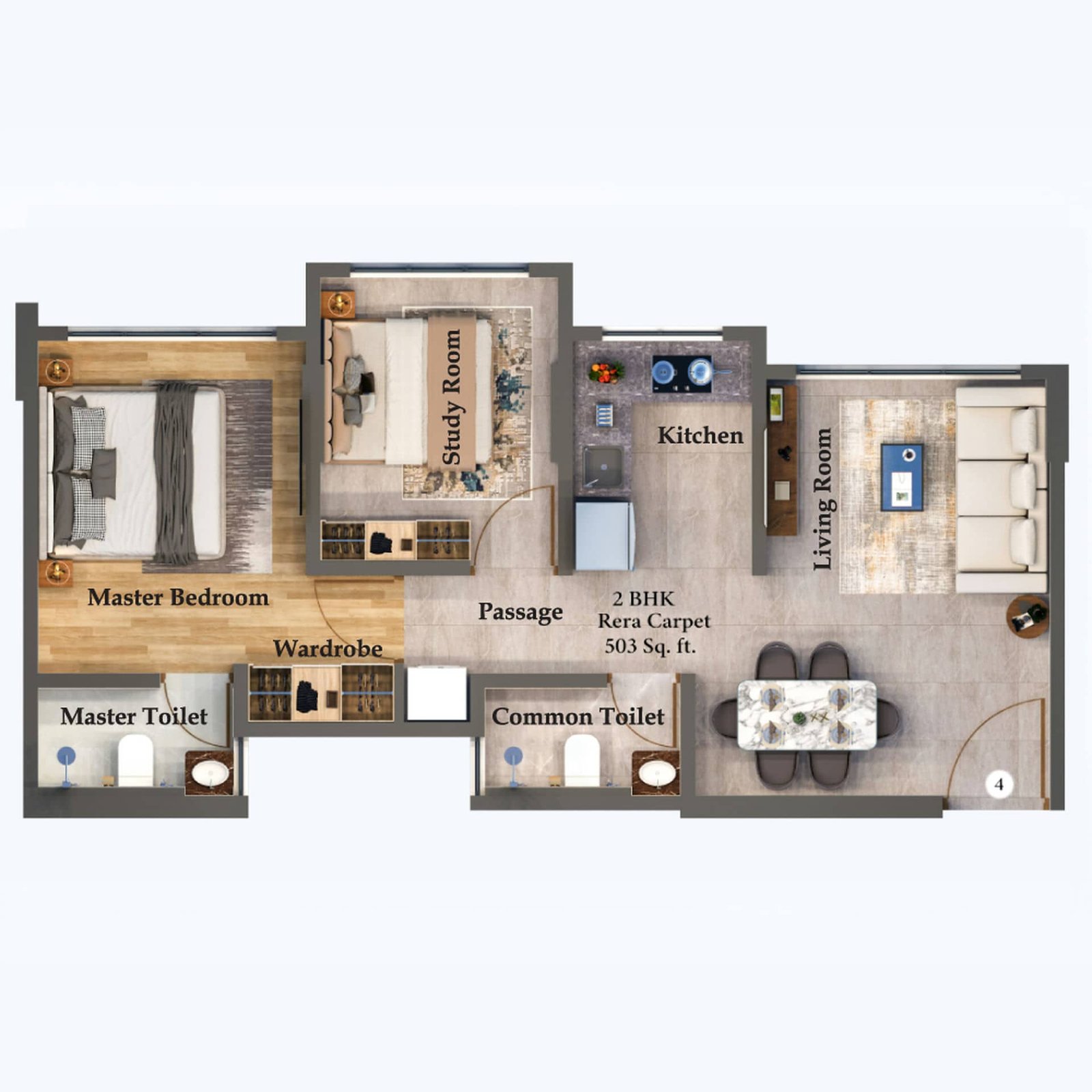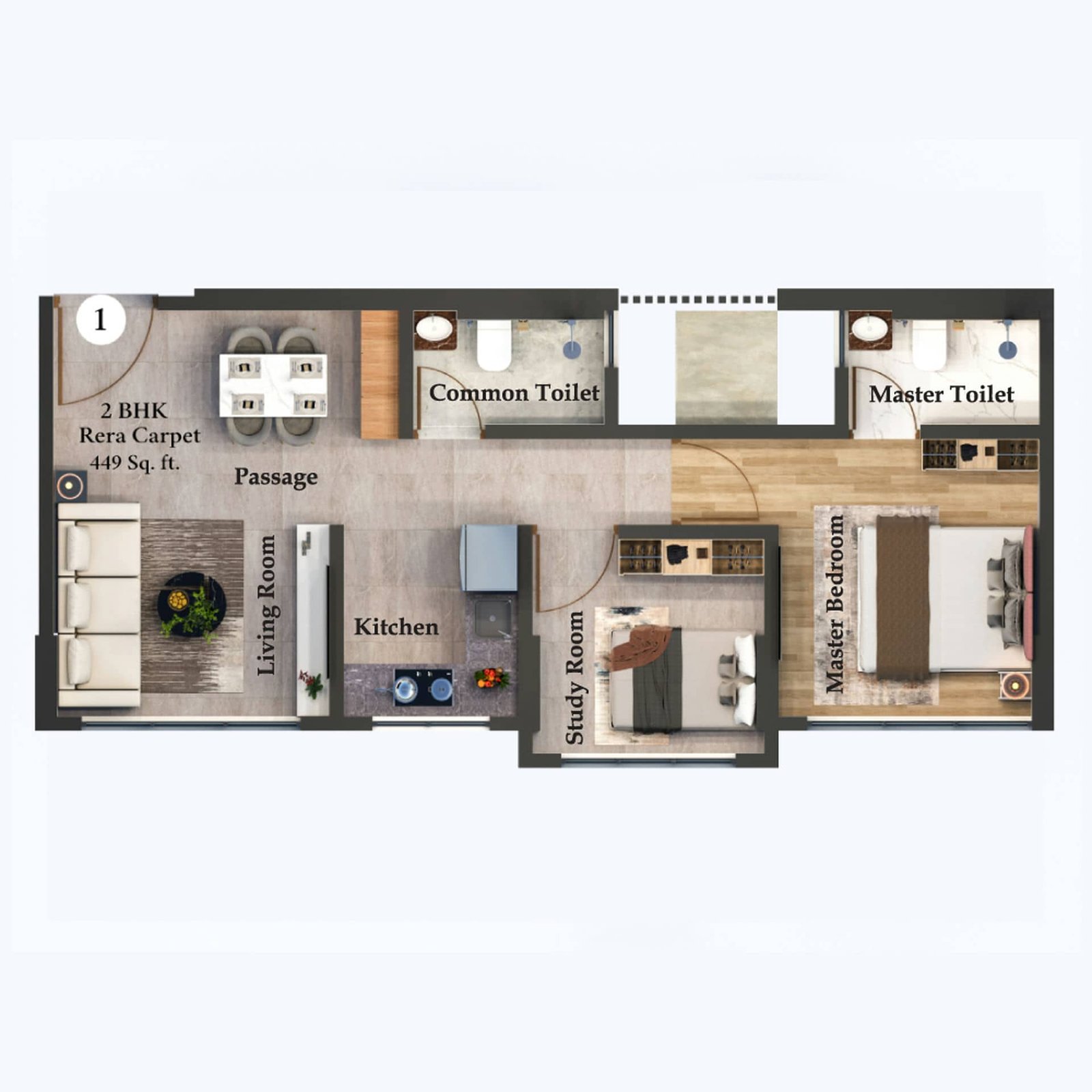 2BHK Flats (449 to 598 Sq. Ft Rera Carpet)